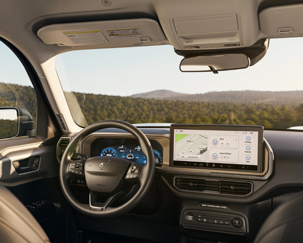 The available 1.5-litre and 2.0-litre EcoBoost® engines combine turbocharged performance with impressive fuel efficiency. The 1.5L engine delivers up to 181 horsepower while maintaining excellent fuel economy, making it perfect for both daily commutes and weekend getaways. The 2.0-litre EcoBoost® engine steps up the game with 245 horsepower and quick acceleration that makes highway merging and off-road climbing effortless. No matter which engine you choose, the Bronco Sport delivers power without sacrificing efficiency.