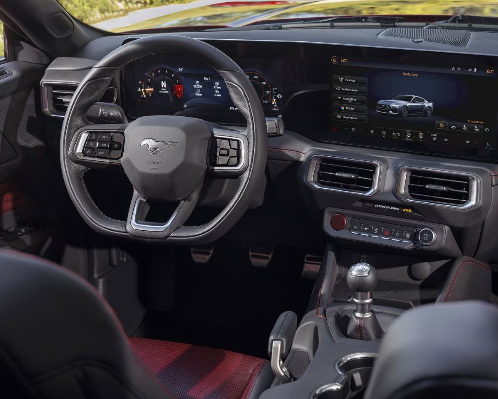 The 2025 Mustang comes equipped with Ford’s latest SYNC 4 infotainment system, featuring a large touchscreen that supports wireless integration with any phone. This system ensures seamless connectivity, allowing drivers to access navigation, media, and vehicle settings easily. Higher trims offer a digital instrument cluster customized to screen a range of driving data, enhancing the driver-focused experience.