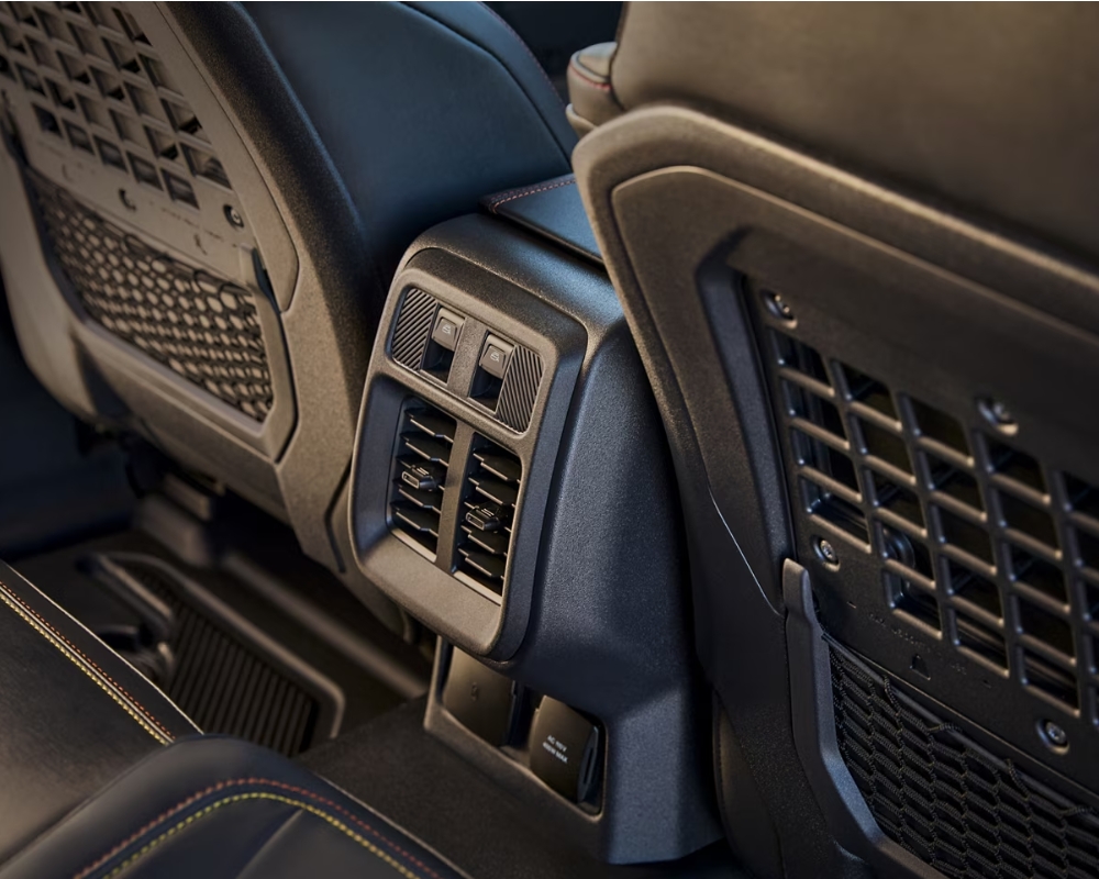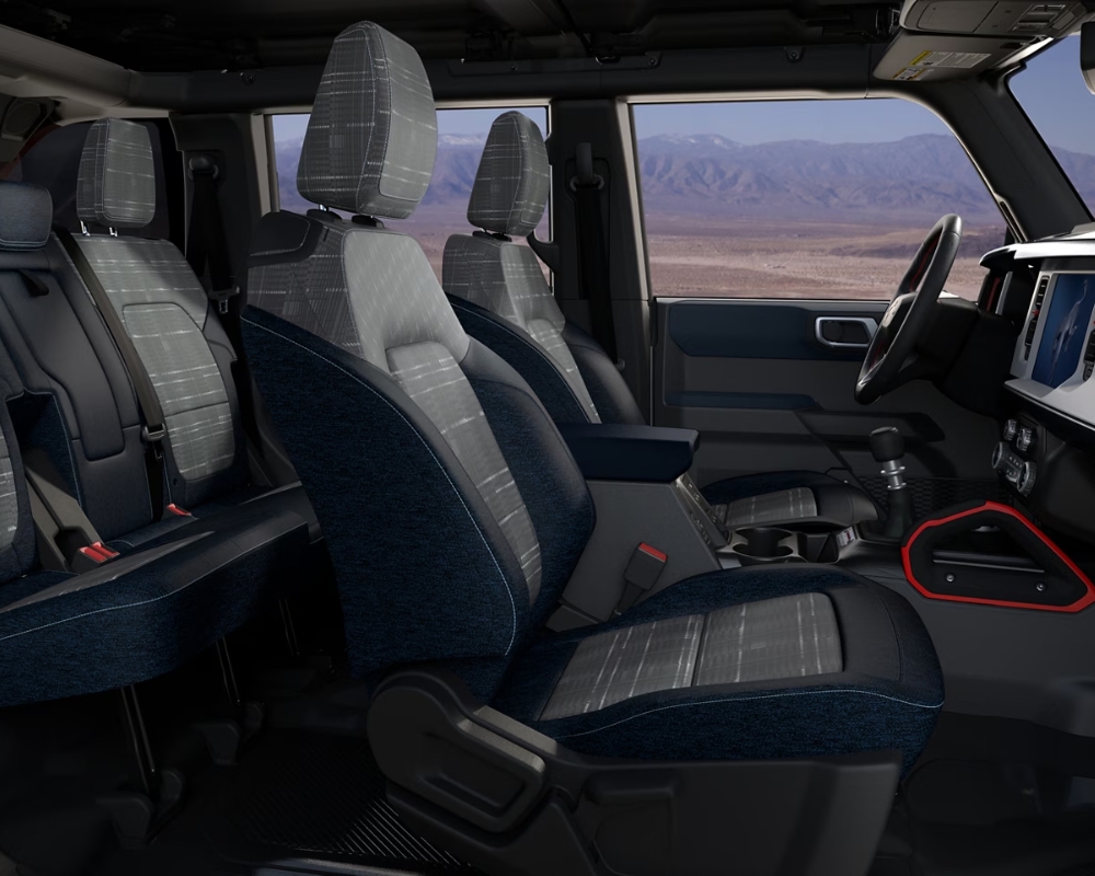 Inside, the 2025 Bronco balances rugged durability with modern comfort. Washable rubberized flooring, marine-grade vinyl seats, and water-resistant surfaces mean you can get as muddy as you want without worrying about the clean-up. But if you prefer a bit more luxury, the Wildtrak® and Heritage Editions offer leather trims, heated seats, and soft-touch materials that elevate every drive.